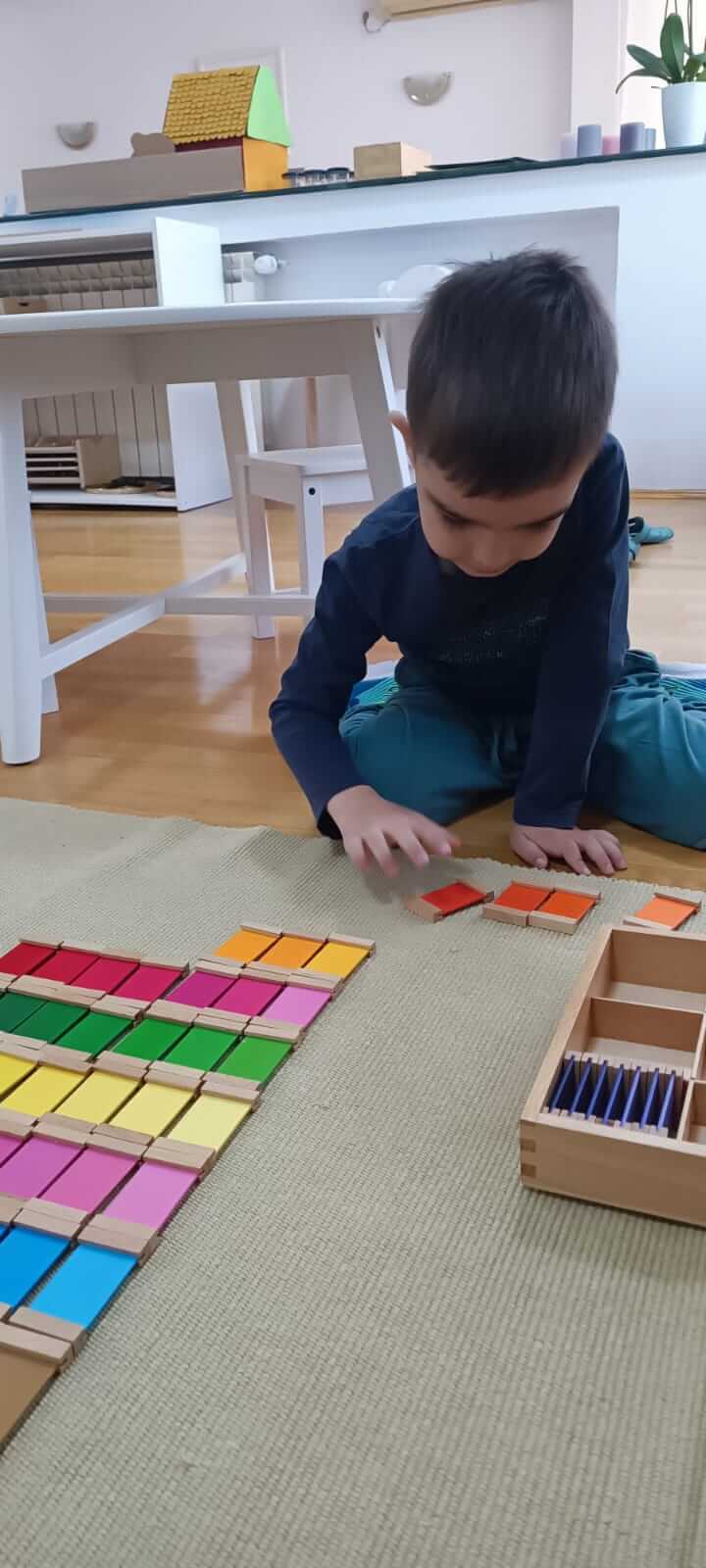 Folosind materiale senzoriale distincte pe parcursul perioadelor senzitive specifice fiecărei vârste, cei mici învață să să distingă, să ordoneze, să clasifice și să descrie impresii senzoriale legate de dimensiune, temperatură, greutate, culoare, grad de înclinare, miros, etc.